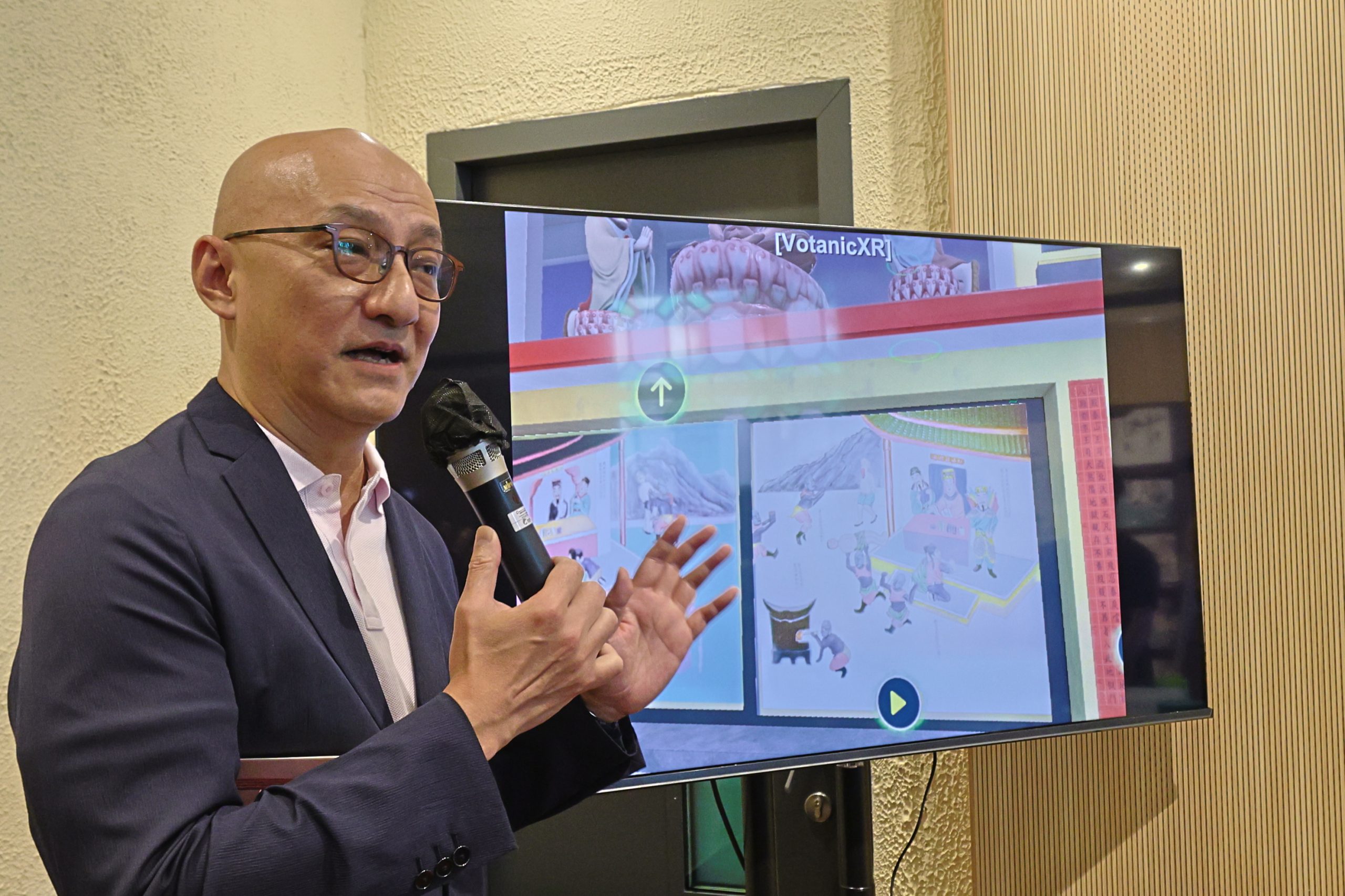 The launching preview of the VR exhibition, “Virtual Reality: The ‘Ten Courts of Hell’ of Tiger Balm Garden,” took place on 14 May 2025. Hosted by the Antiquities and Monuments Office (AMO) and co-organised with the Hang Seng University of Hong Kong (HSUHK) Virtual Reality Centre (VRC) and Hong Kong Chu Hai College (HKCHC), this event introduced an innovative immersive experience to the public.