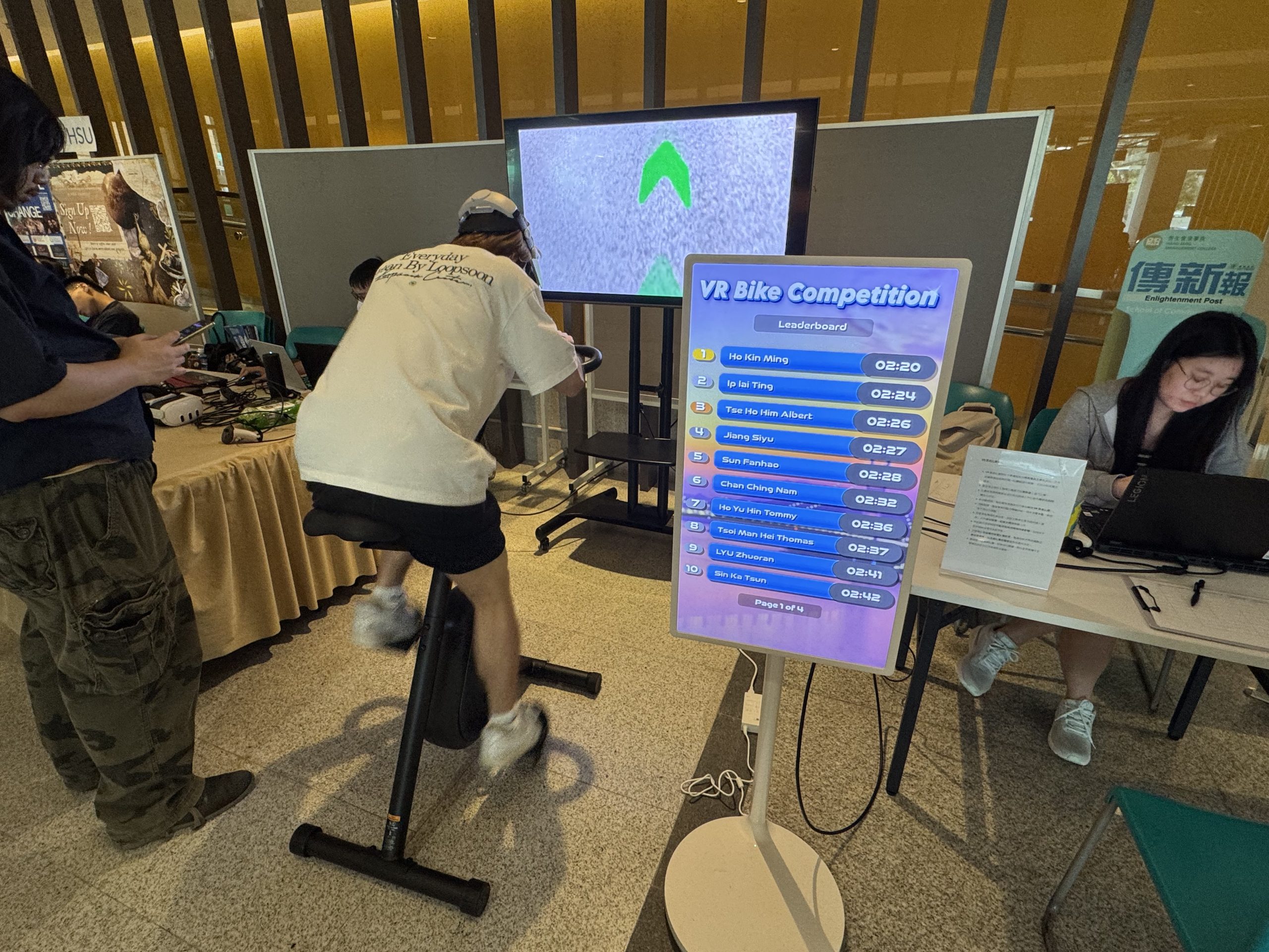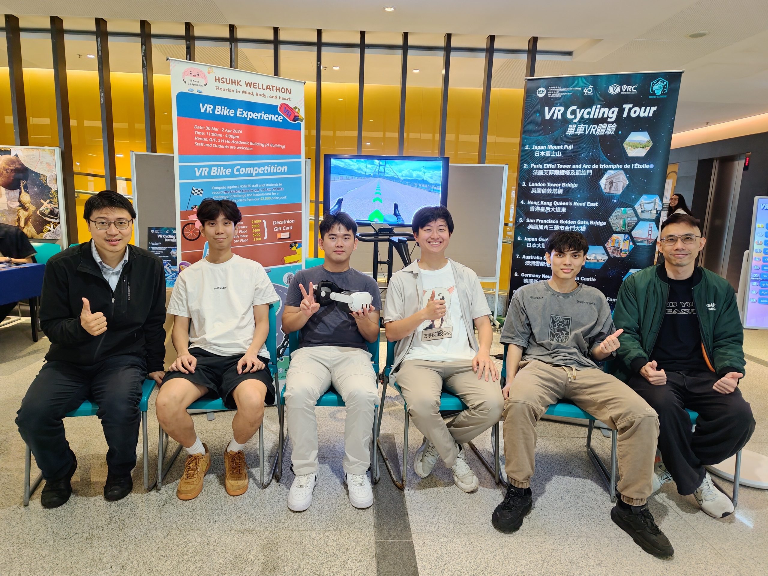The Virtual Reality Centre (VRC) of the Centre for Teaching and Learning (CTL) successfully organised the VR Bike Experience from 30 March to 2 April 2026 at the G/F of the S H Ho Academic Building, attracting participation from over 100 staff and students across the University. The event was one of the activities under “Wellathon”, hosted by the Student Affairs Office (SAO) and co‑organised by the SAO Physical Education (PE) Section, with the aim of promoting physical and mental well-being within the HSUHK community.